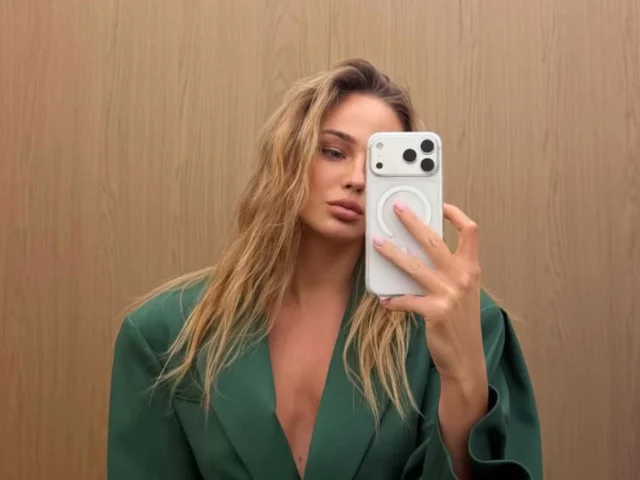 На інших знімках Даша експериментувала з структурованішим стилем, позуючи в зеленому піджаку з чітким силуетом.